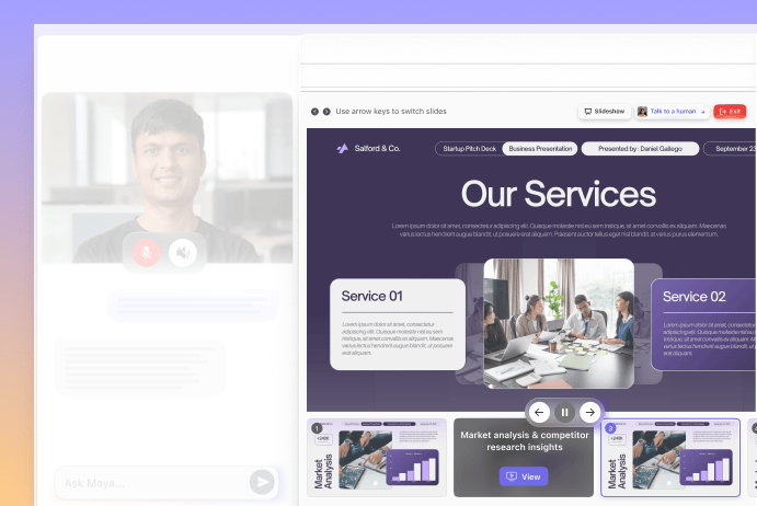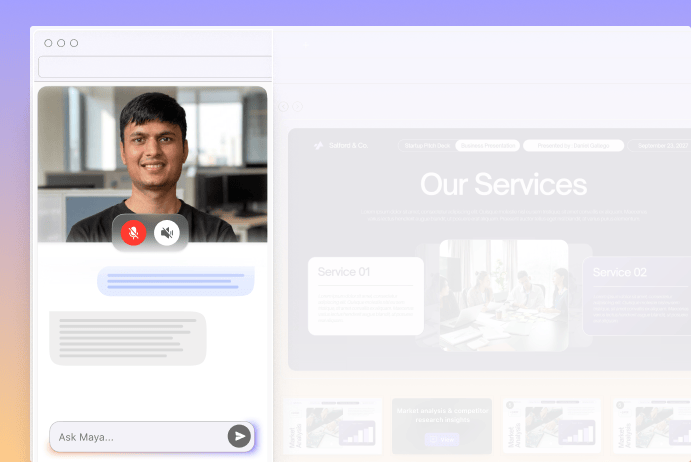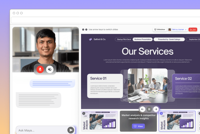 Replace static decks with an interactive AI that investors can explore at their own pace — on their time, not yours.